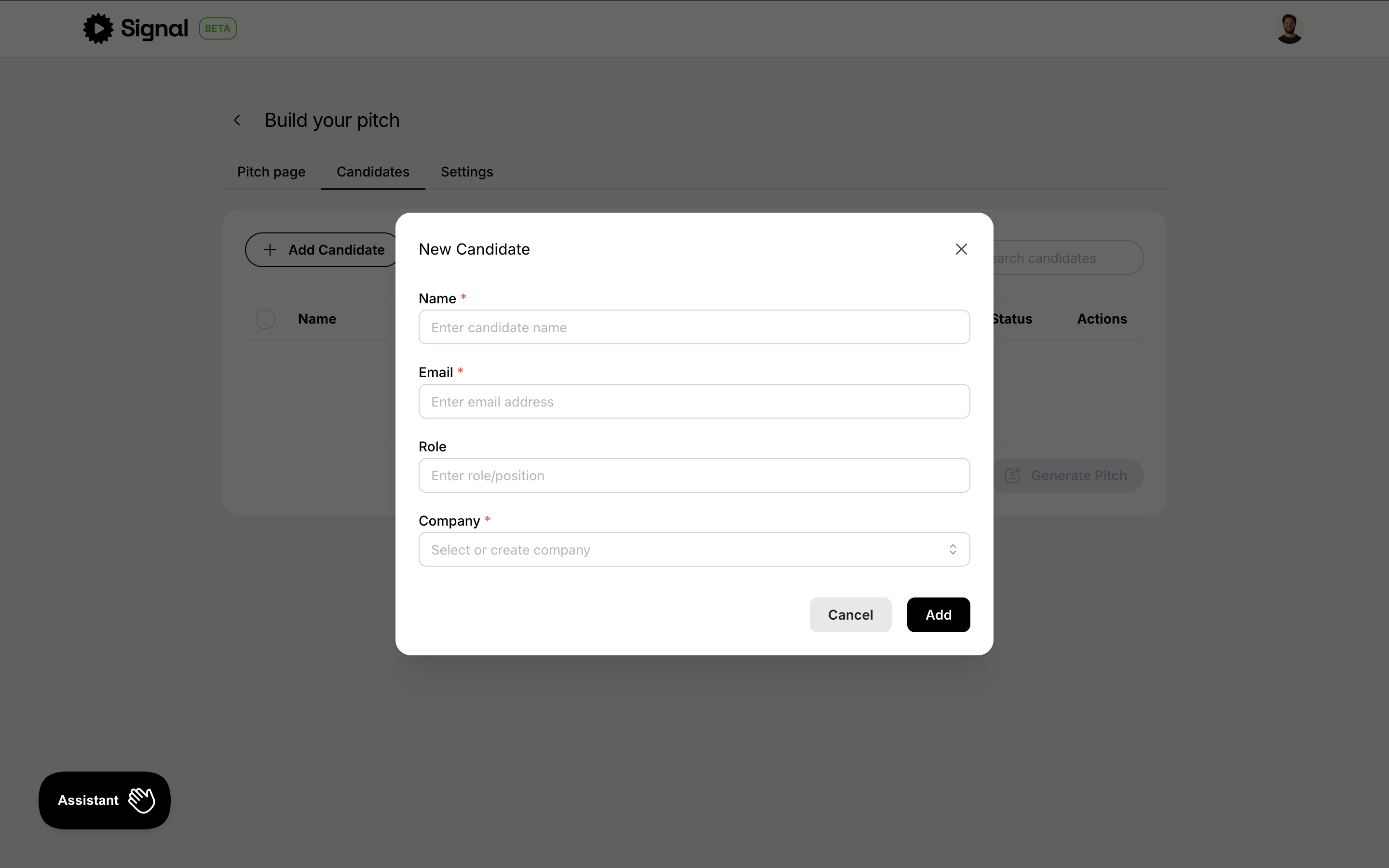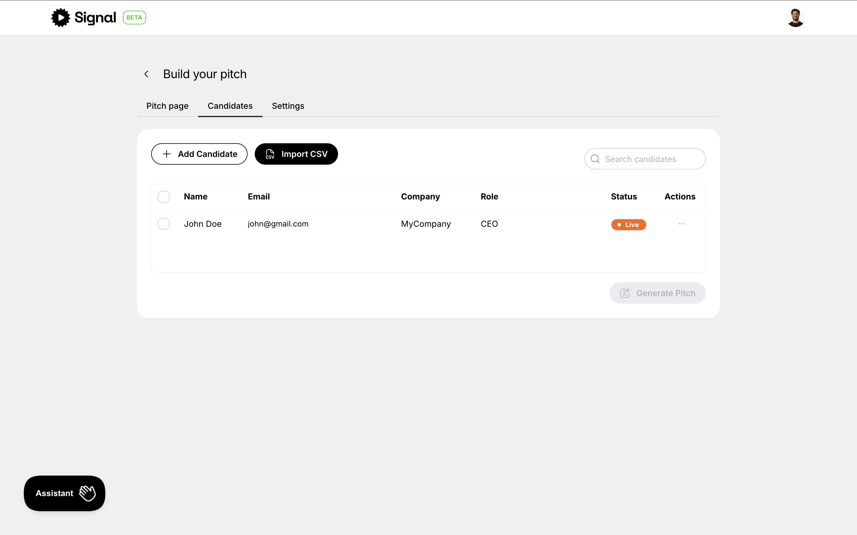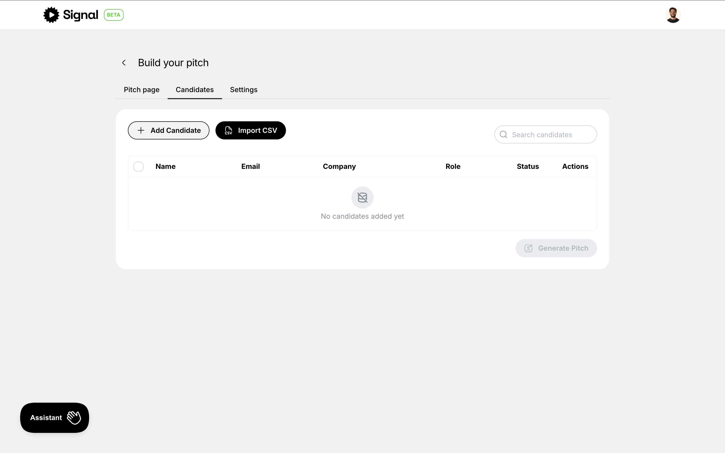 Once you have created and configured your pitch page, you are ready to add candidates to the pitch.