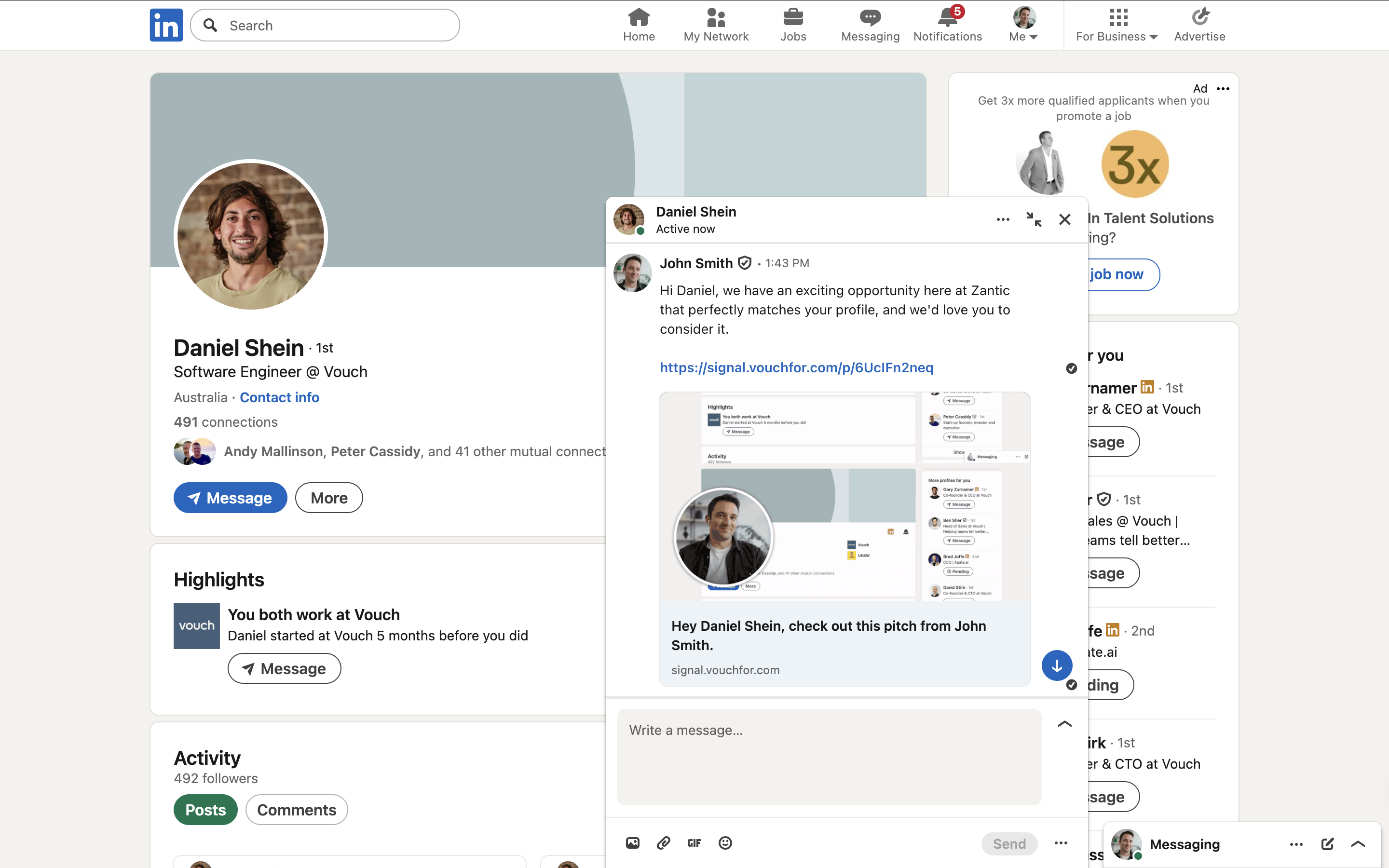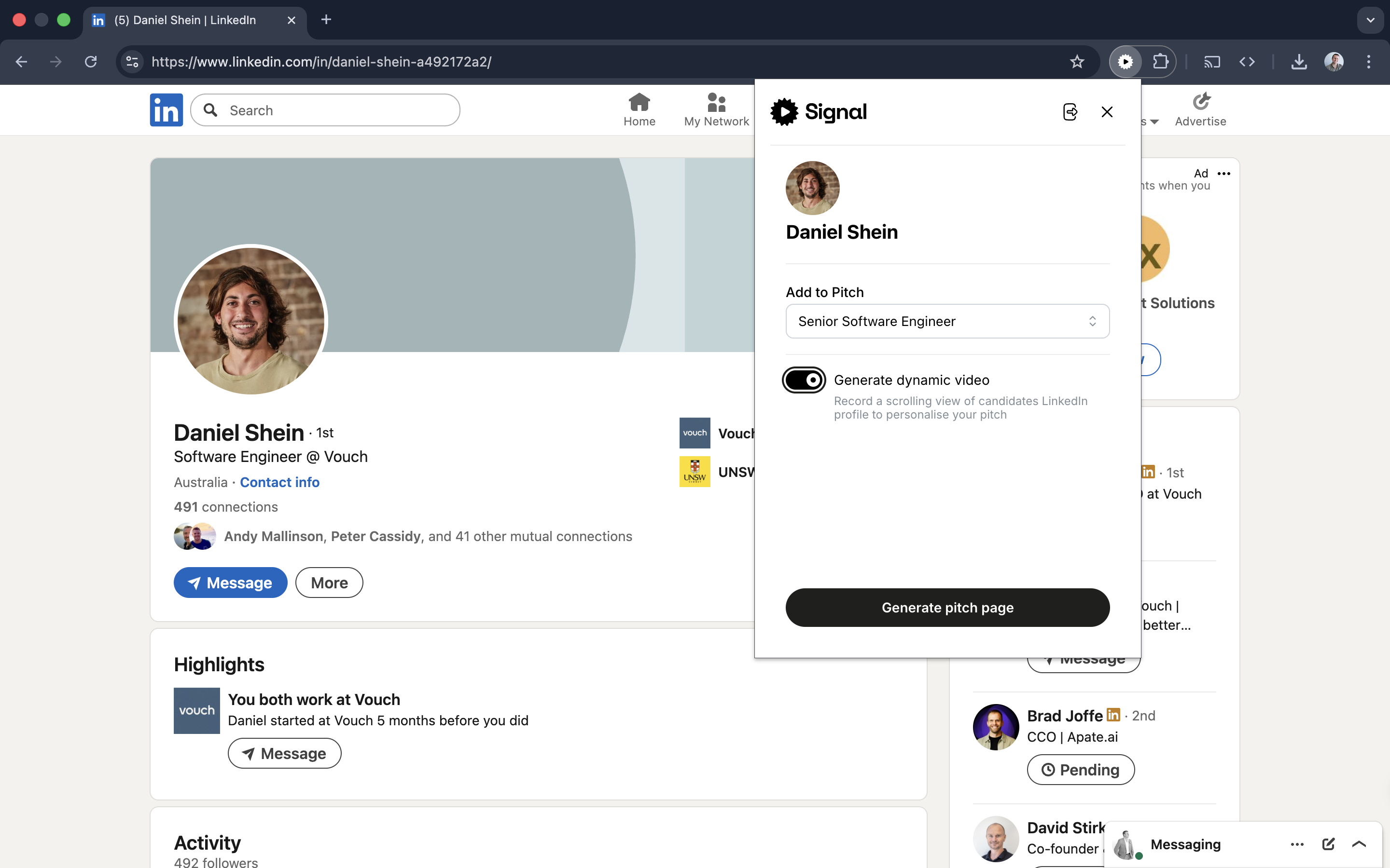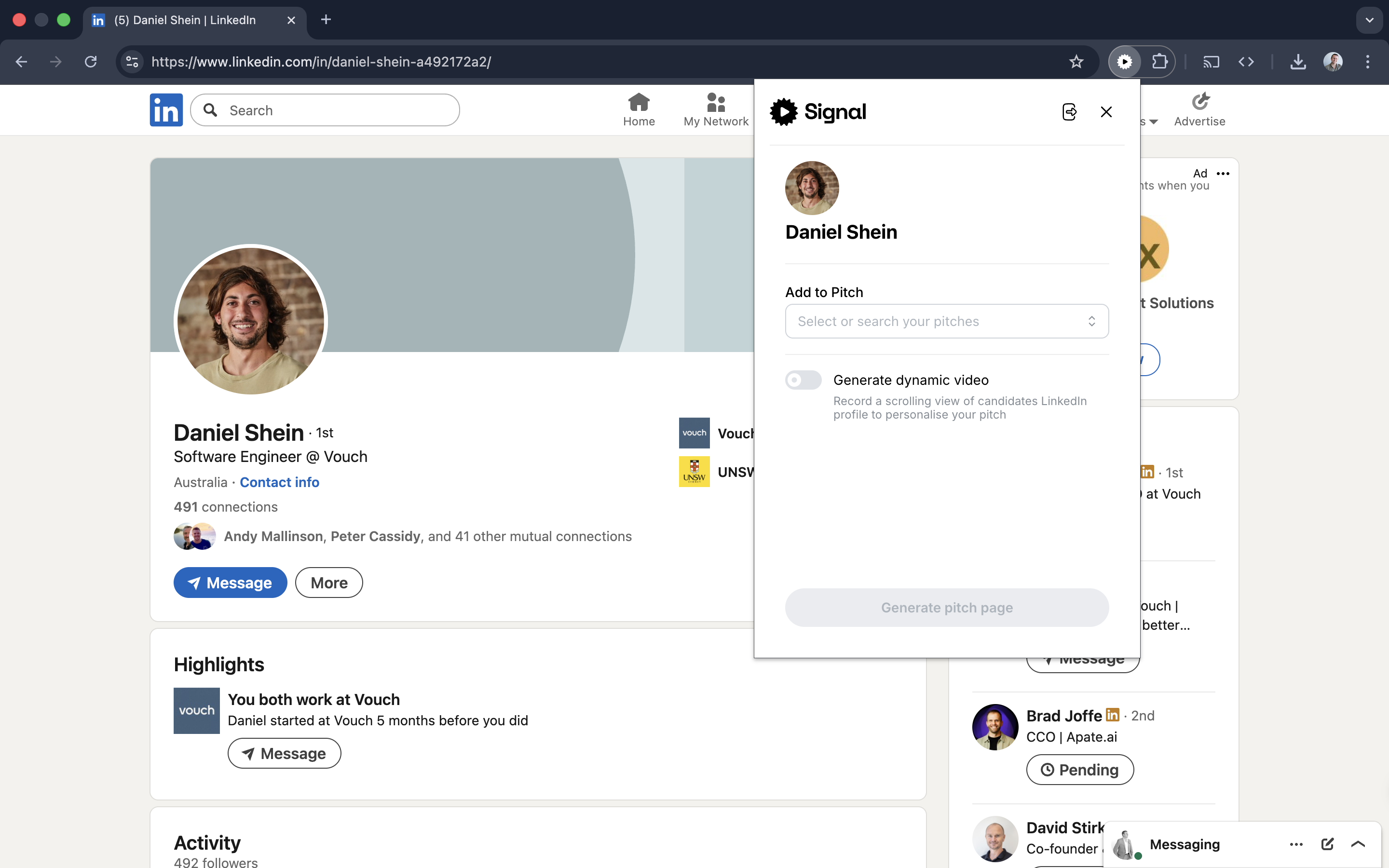 Before starting, ensure the Signal Browser Extension is installed. To add a candidate, simply go to their LinkedIn profile and click on the extension icon.
