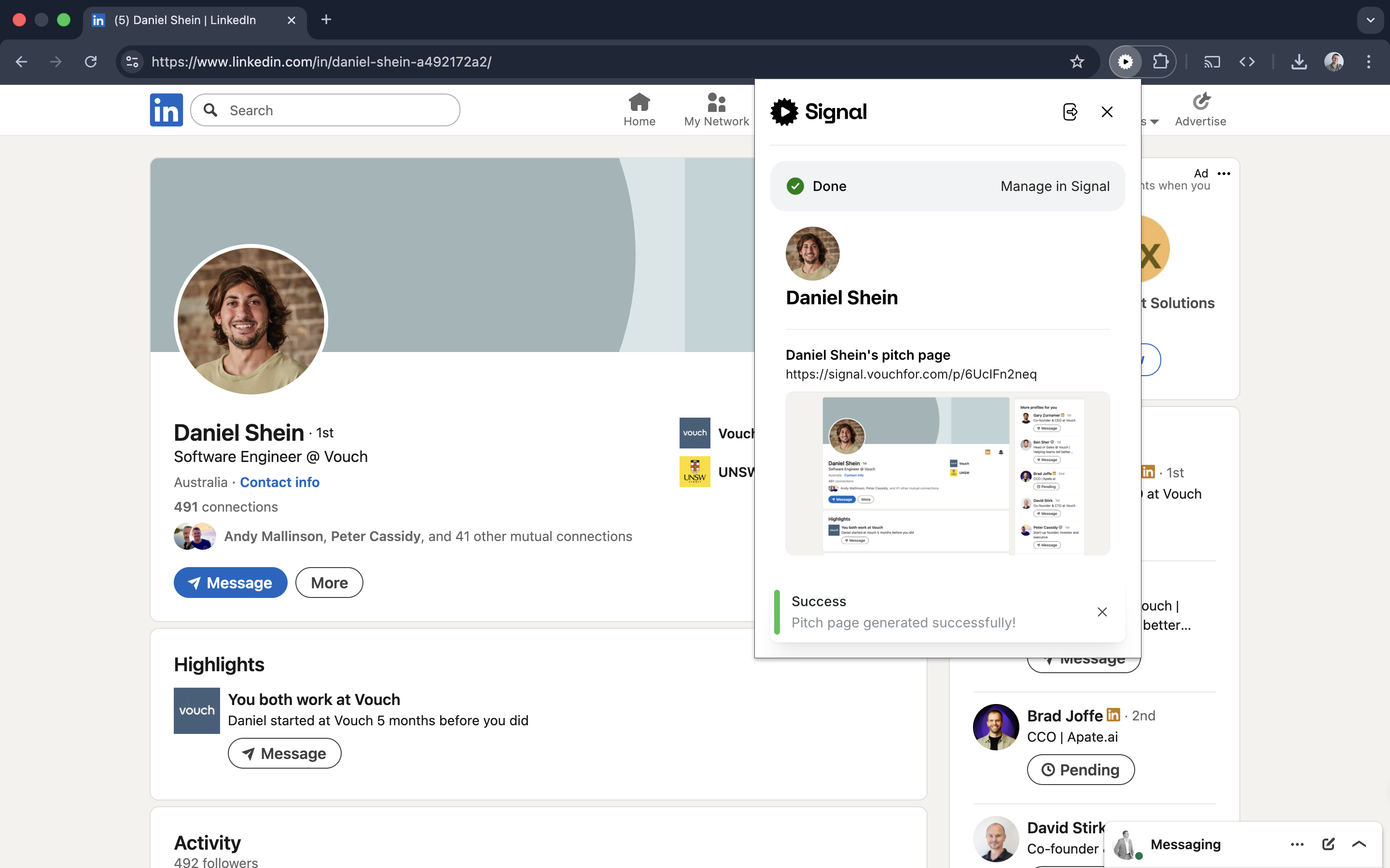 Signal will now generate the personalized pitch page and, if enabled, the dynamic video.