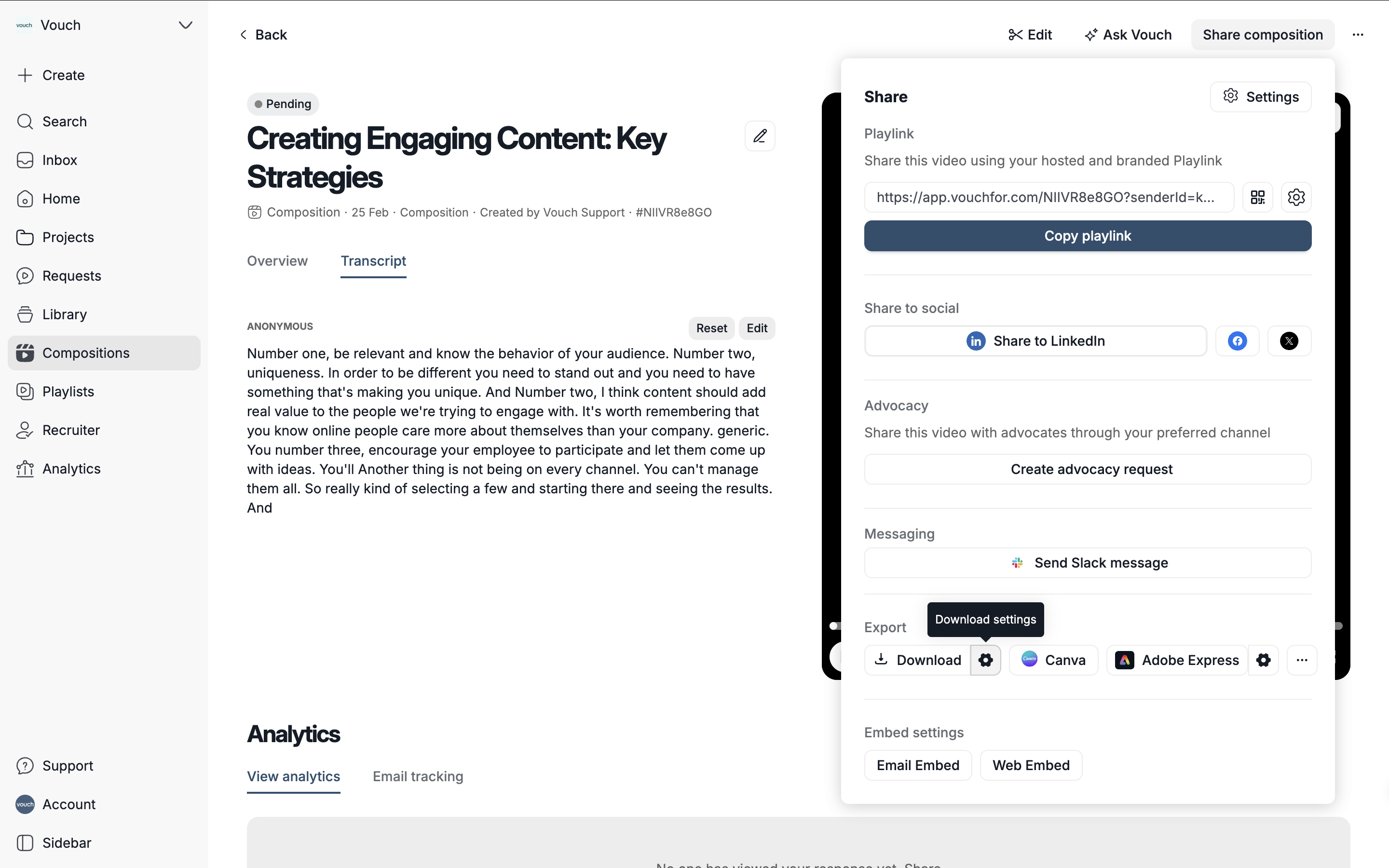 Navigate to Share Composition, and then select the Download Settings cog located next to the main Download button.
