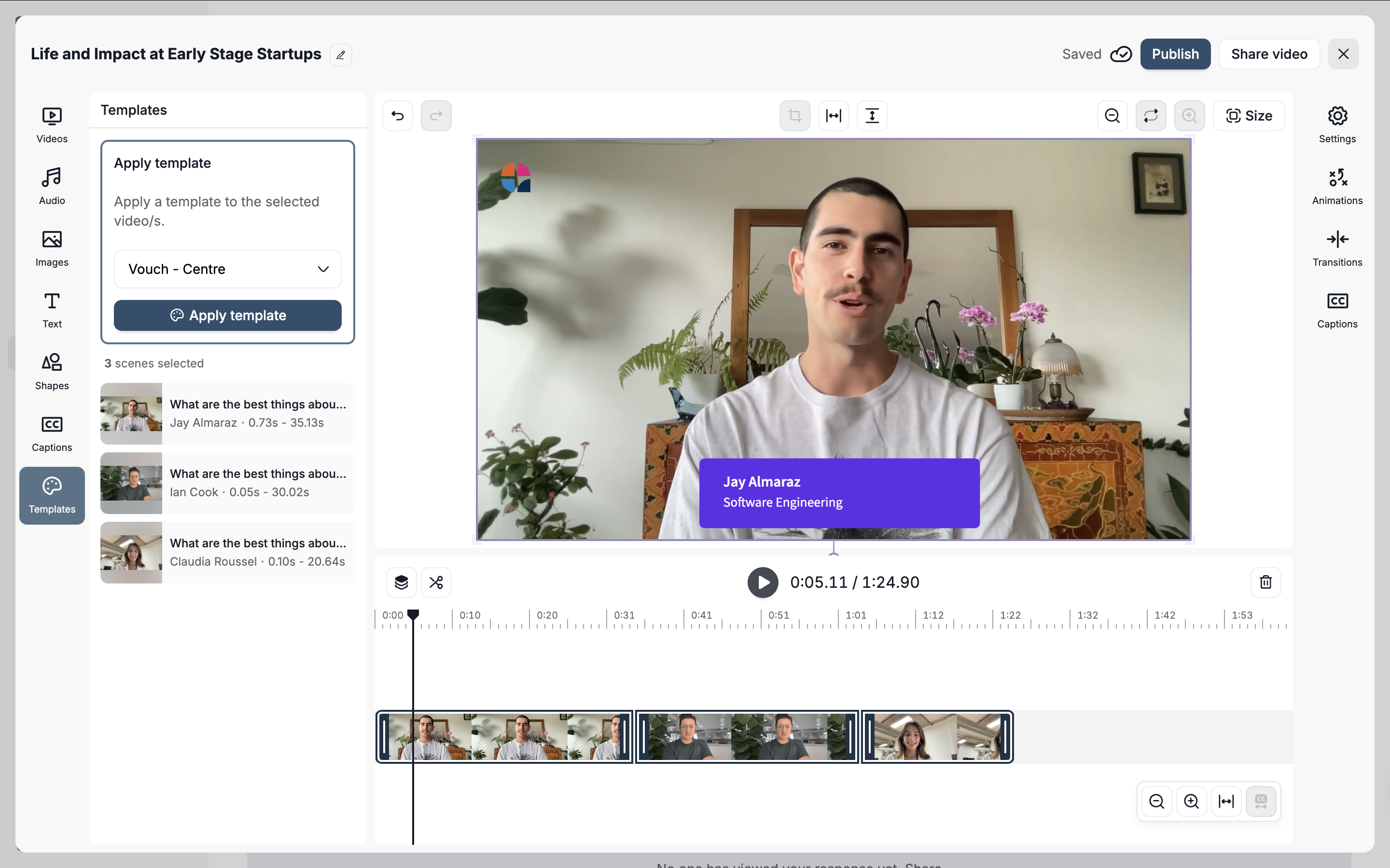 The Vouch Compositions Editor makes it fast and easy to apply pre-defined templates to one or more scenes within your composition.
