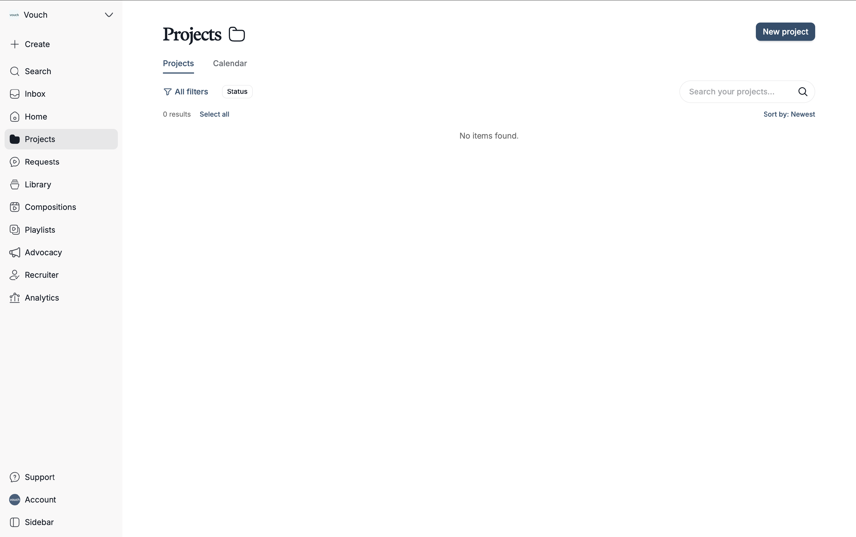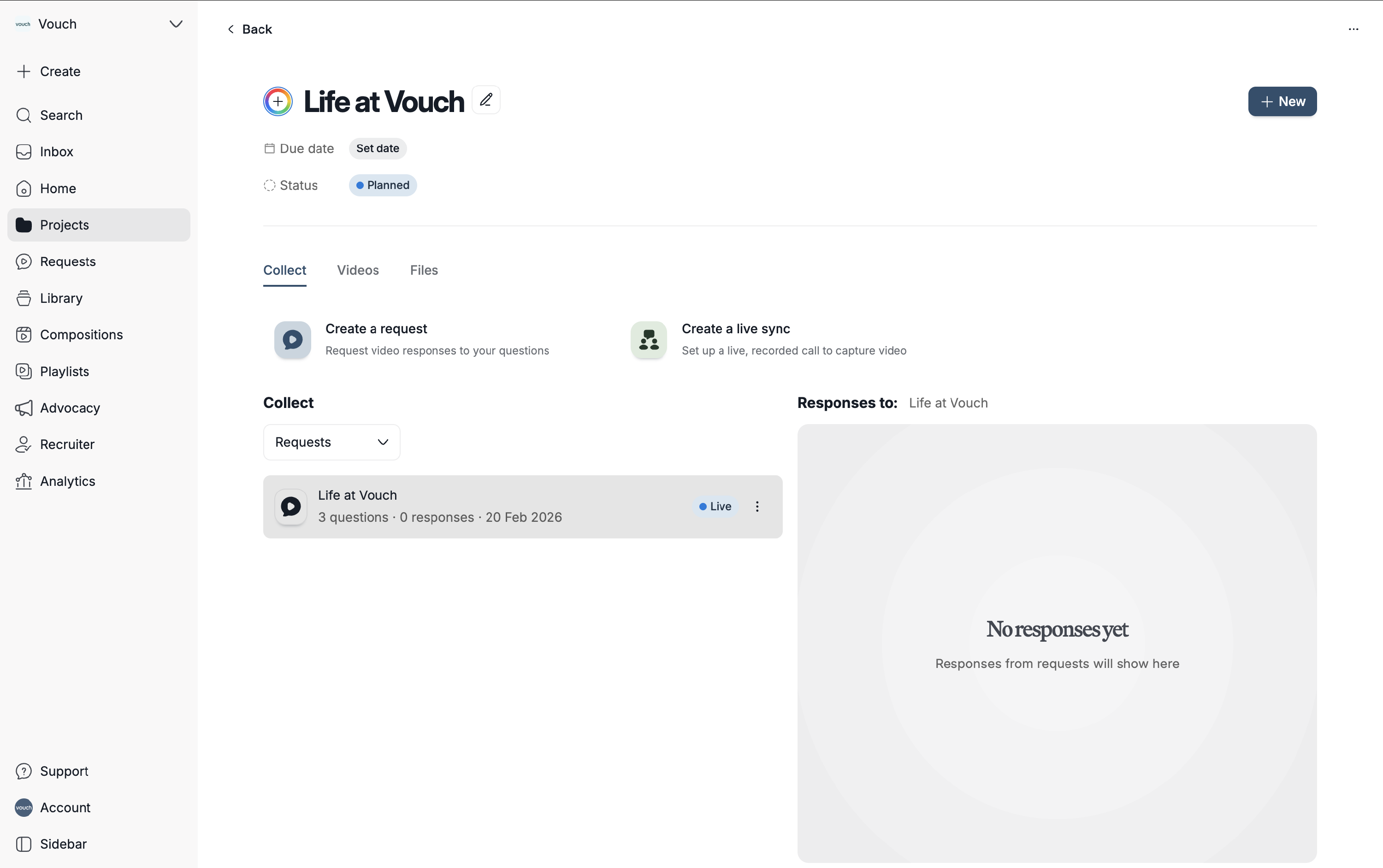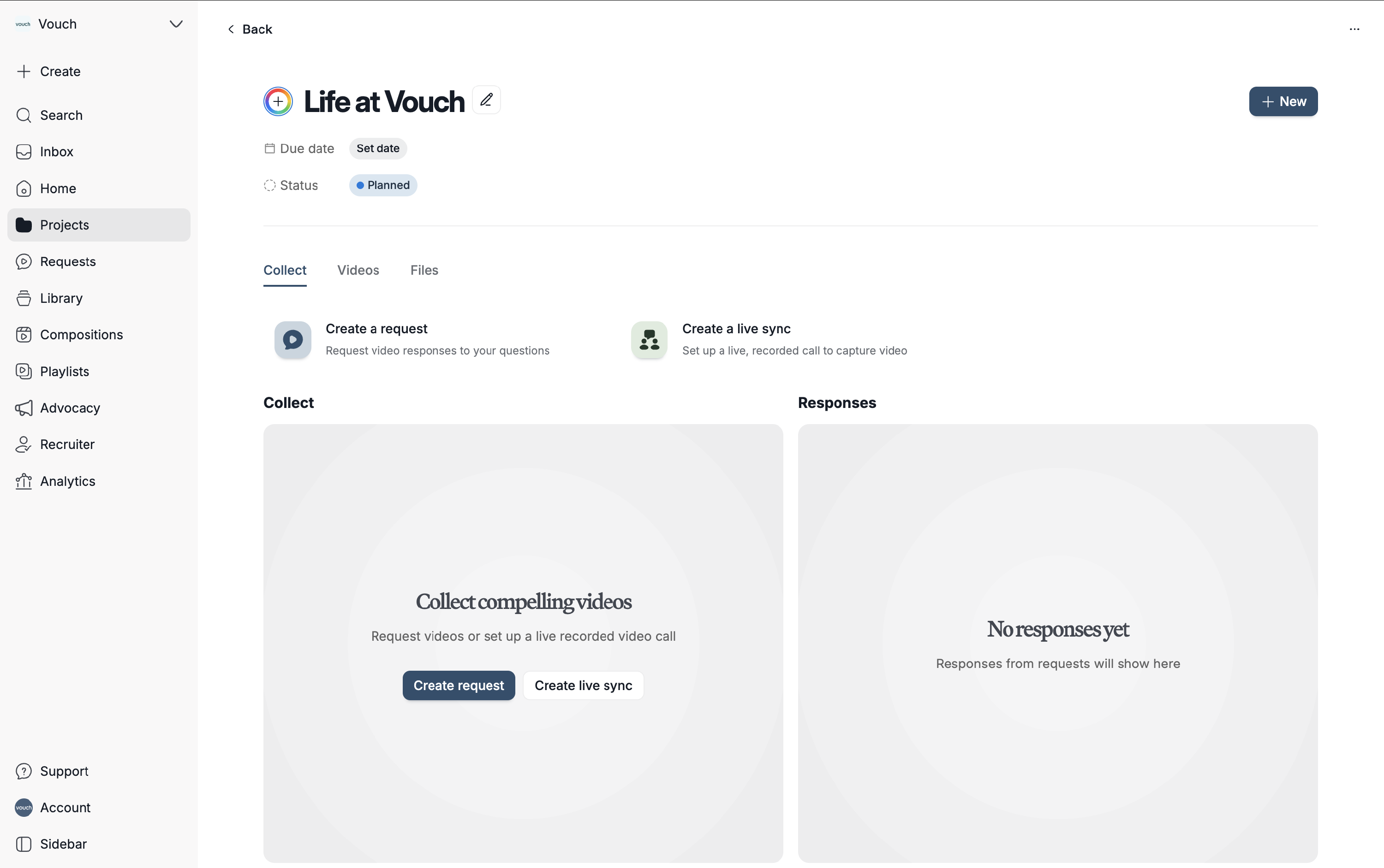 Vouch Projects offers a new way to stay organised by grouping associated requests, syncs, videos, and files into a single, dedicated container. This feature allows you to manage every stage of your production in one place, with the added ability to track progress through custom statuses and set clear due dates for your team.