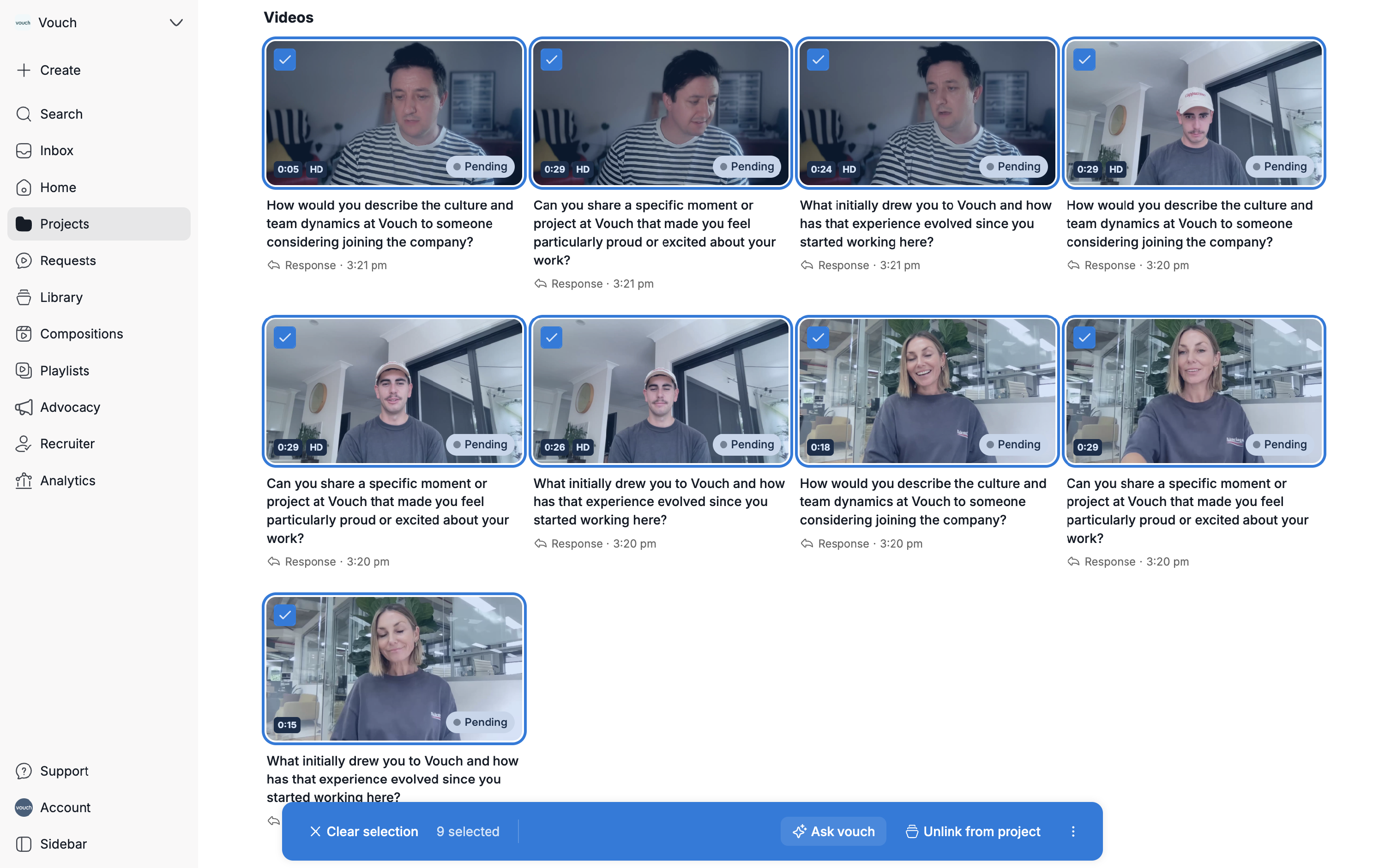 Alternatively, you can run Ask Vouch across your relevant videos to automatically identify highlights and create a composition from those key moments.
