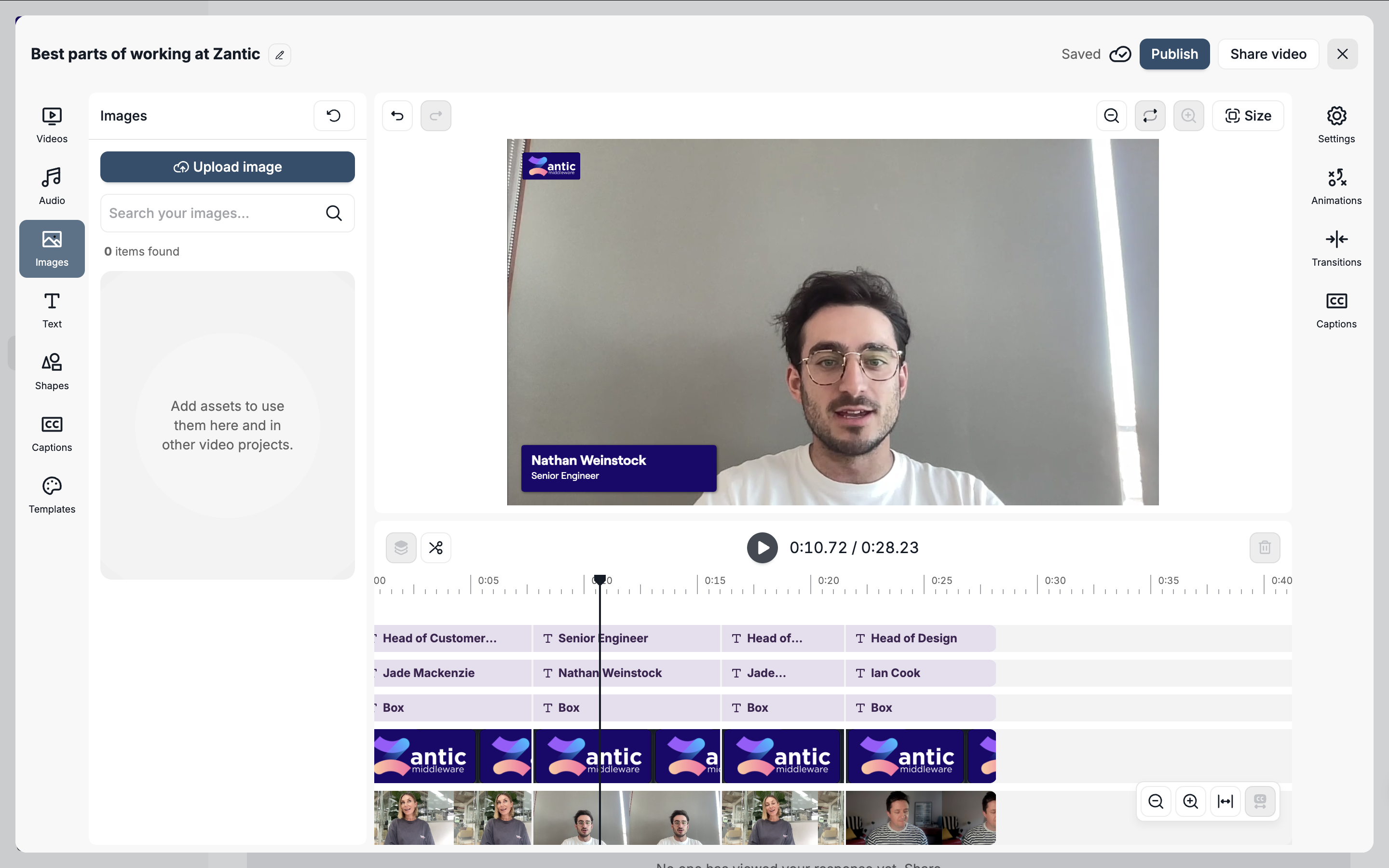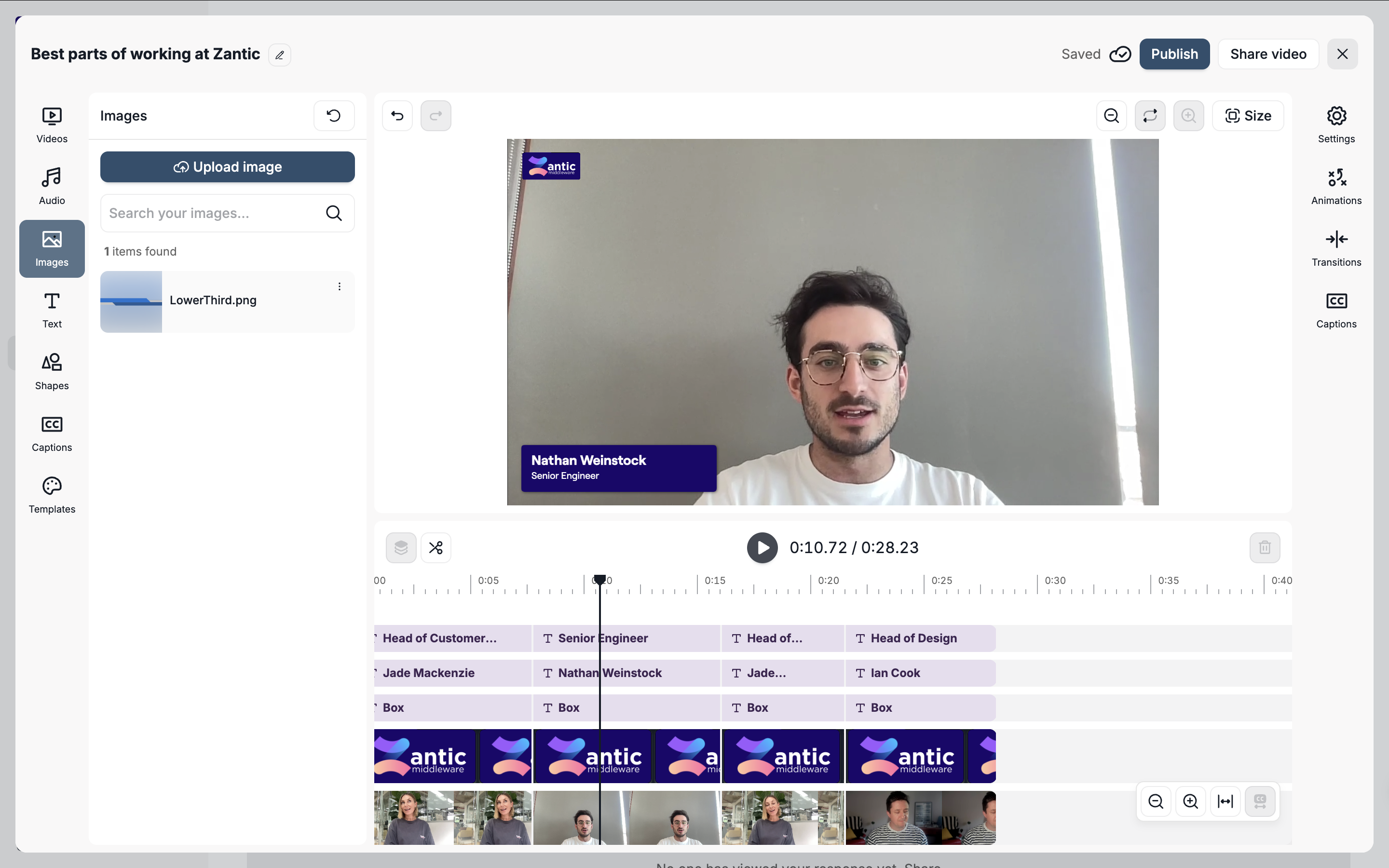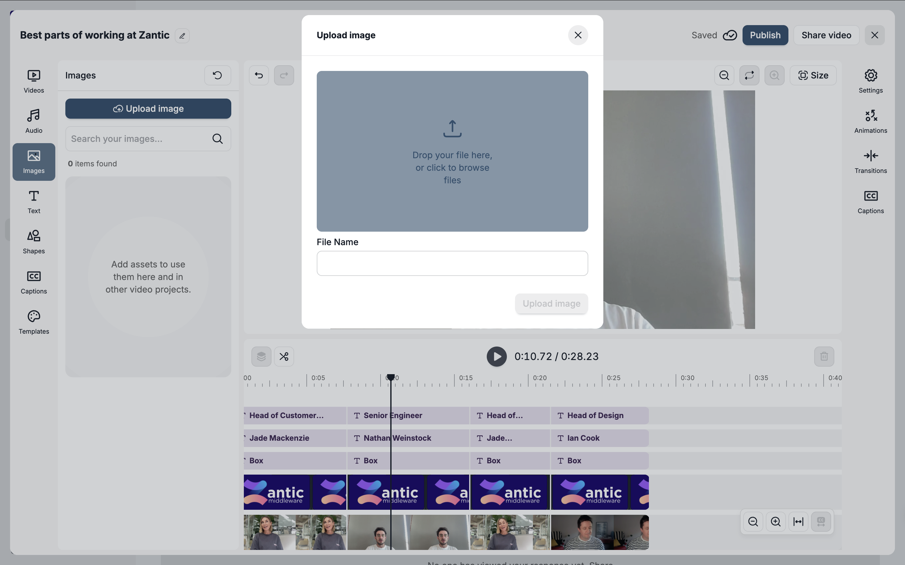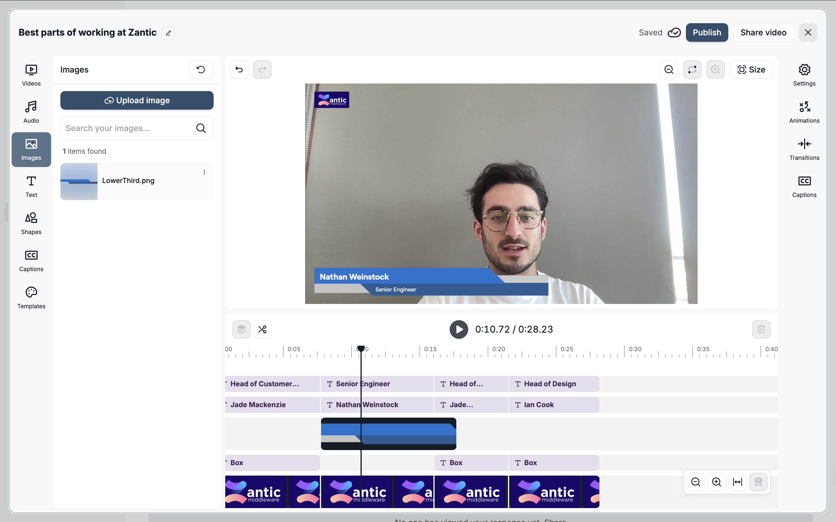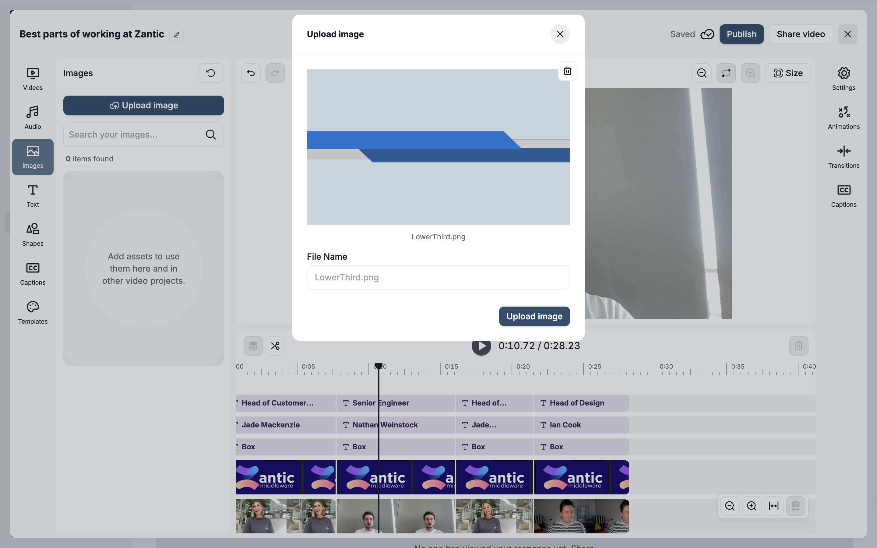 The Vouch Compositions Editor allows you to add image overlays to any part of your video. This guide outlines the process for adding images to your video composition.